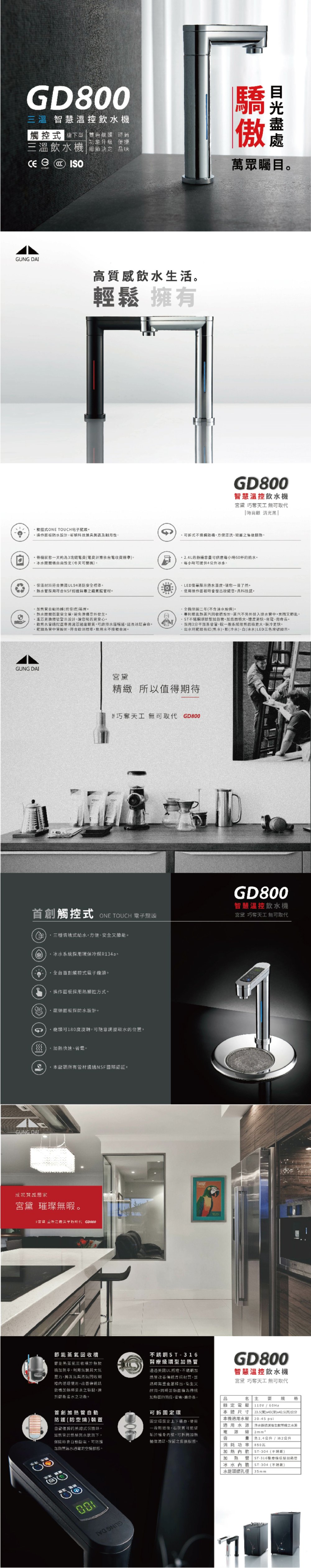 宮黛 GD-800|銀、灰、黑|櫥下|三溫觸控式飲水機