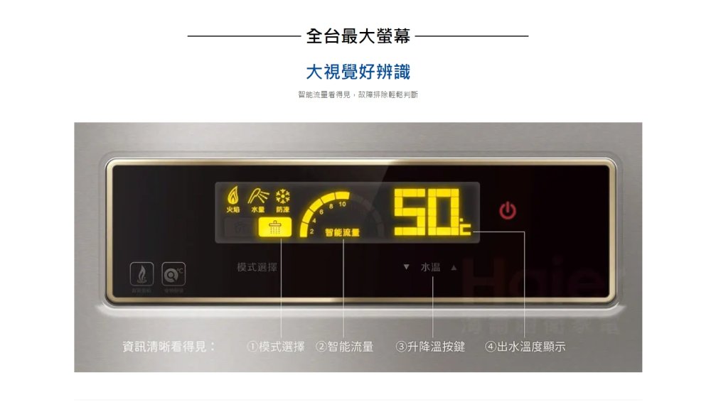 ◆ 大螢幕觸控面板:大視覺好辨識,輕鬆調節水溫